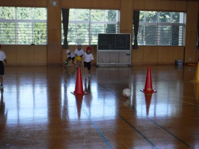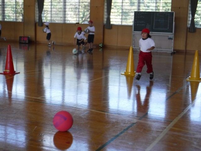 だんだんコーンが遠くなり、シュートする距離が長くなります。