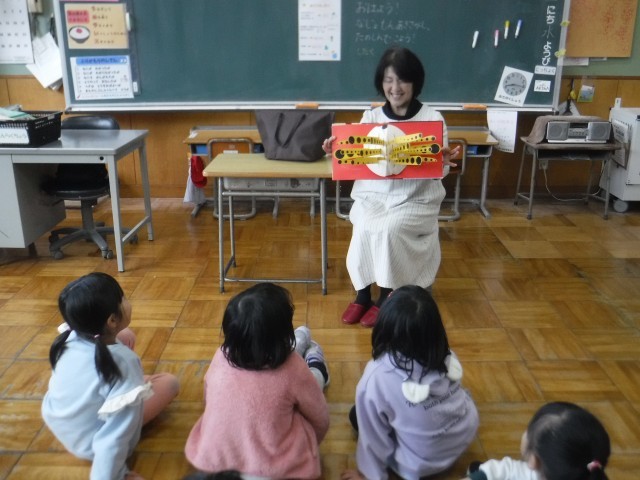 低学年の教室では、「くろまるちゃん」という絵本でした。