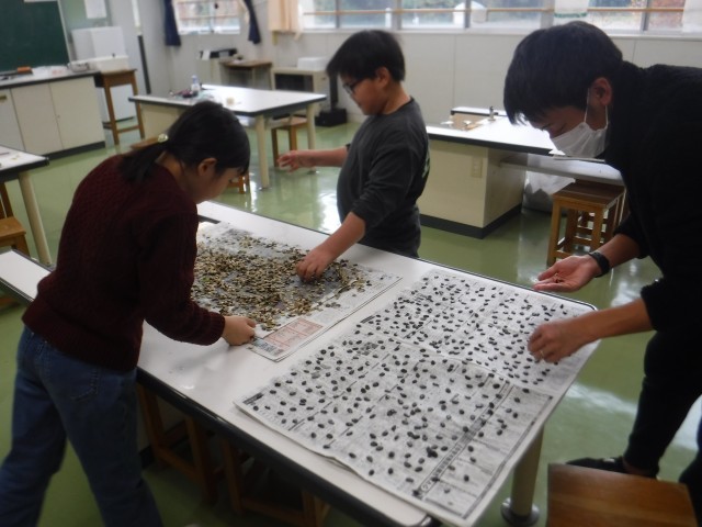 4年生は、育てたヘチマの種の分別をしていました。