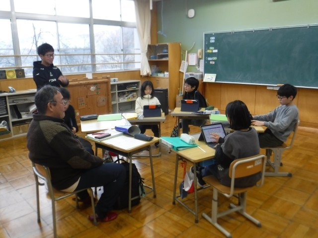 学習を終えた2年生が、何やら集まってカードをにらみ、真剣な様子!