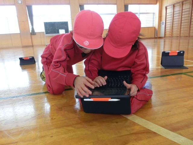 タブレットを活用し、鉄棒の技を紹介したり、鉄棒や縄跳びのカードにできた技や回数を書き込んで記録敵るようにしています。