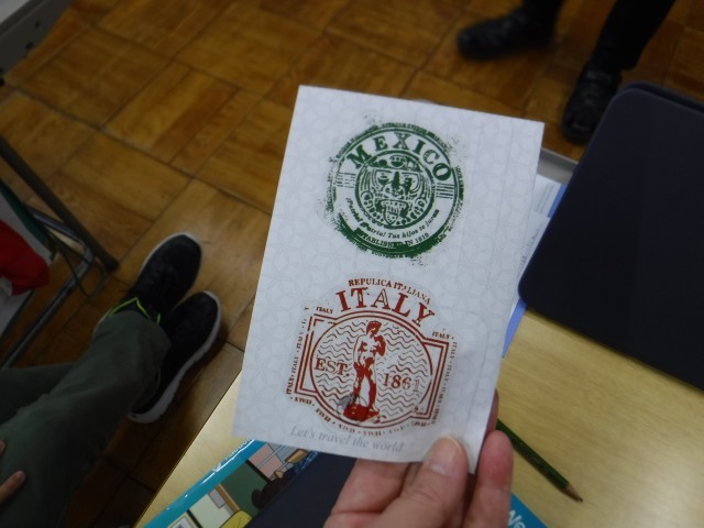 この時間はパスポートを使った入国審査のアクティビティ。