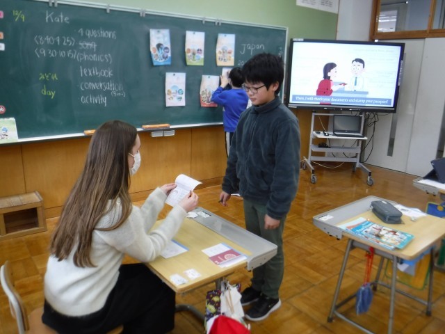 ALTの先生が入国審査係です。