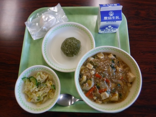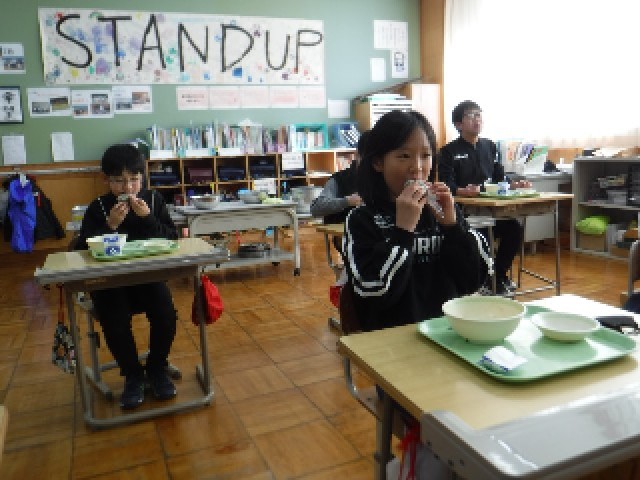 今日の給食の「大福もち」は、津南町の有機食品で作られています。