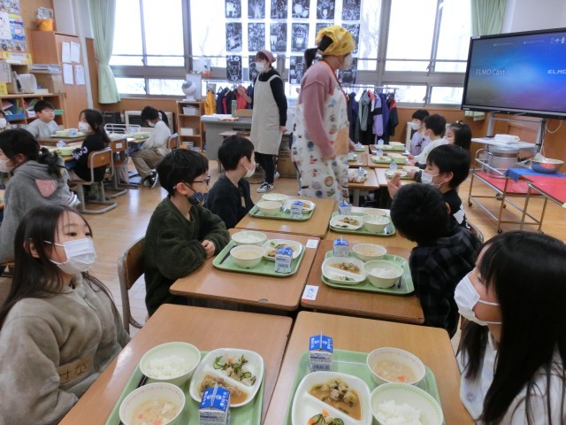 大勢の中での授業を体験し、給食の配膳、給食、昼休みまで過ごしました。