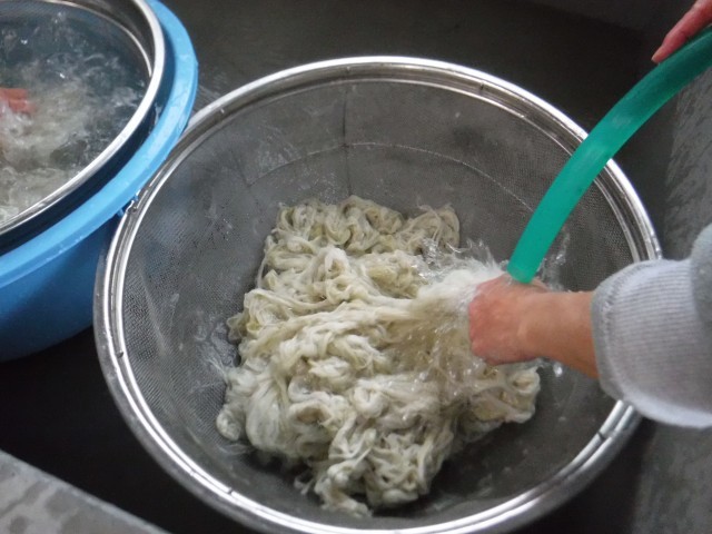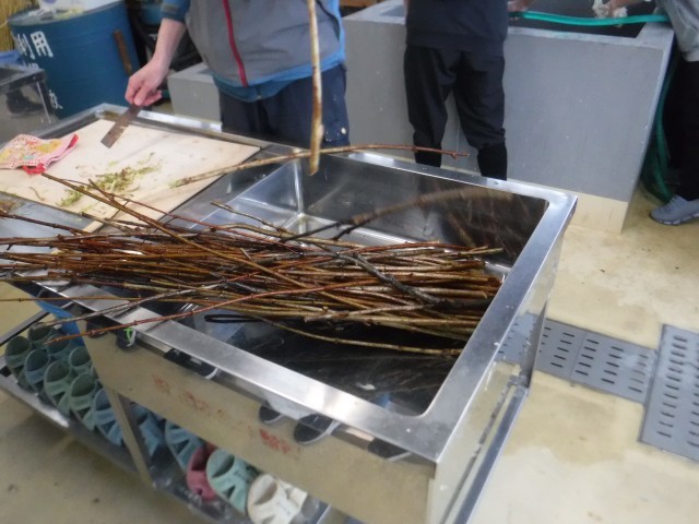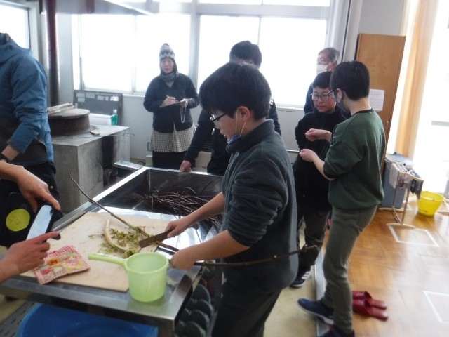 今日は、指導者の山岸さんが山で採ってきてくださったノリウツギから、「のり」をつくりました。