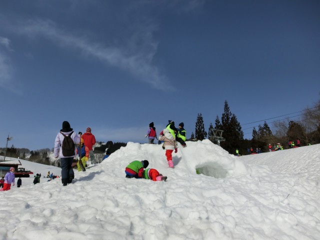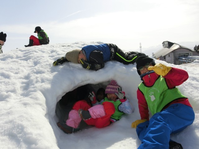 雪積みレースをしたり、雪山に登ったり、