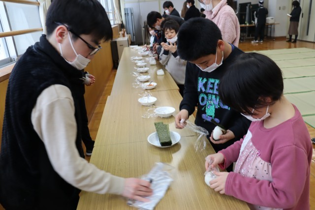 全校でおにぎりパーティをしました。