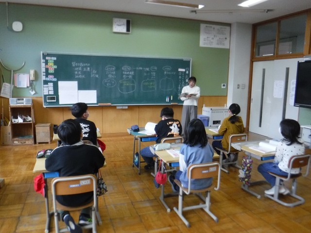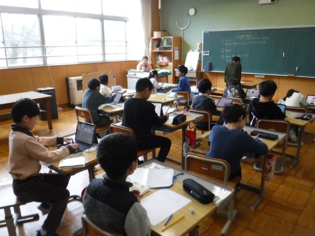 2つの教室では、キャリアパスポートに入れる「自己紹介カード」を書いていました。