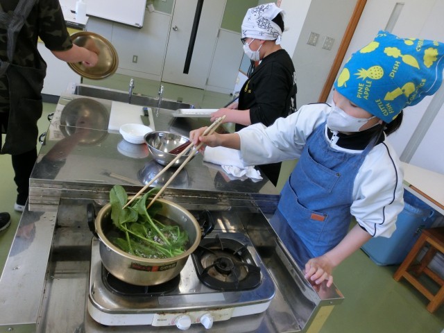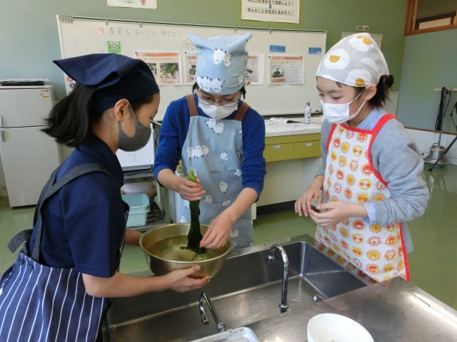 今日のめあては、「青菜をおいしくゆでよう」です。