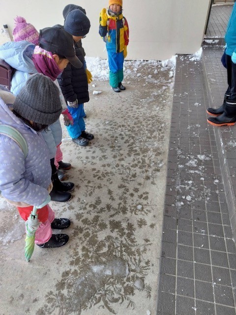 朝、登校すると、玄関に不思議な模様がいっぱい!よくみると、葉っぱの模様みたいです...