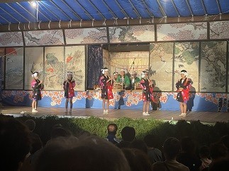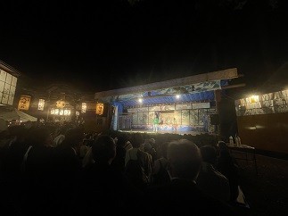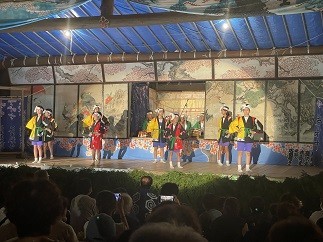 8月18日午後八時。芦ヶ崎小学校区の赤澤集落で昔から受け継がれている「赤澤八幡社奉納神楽(以下赤澤神楽)」が行われました。平成二十一年には津南町無形民俗文化財に登録され、赤澤神楽保存会の下、脈々と受けつがれているものです。神楽は十一演目で構成され、当校の赤沢集落の低学年は「おけさ踊り」、高学年は「岩室甚句」を演舞しました。子どもたちは、7月から週1回、8月に入ると週2回の練習に入り、赤澤集落の先輩方が、じっくり稽古をつけてくださります。子どもたちは、緊張しながらも、地域の伝統を継承する一員として精一杯演舞をすることができました。とても素晴らしい時間でした。