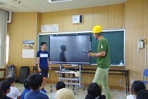 生活指導でも、「あいさつ」の大切さについて伝えました。学校にお客さん(工事関係の人)が来校したことを想定した劇を行いました。子どもたちからも、劇に参加してもらい、あいさつの大切さについて考えてもらいました。