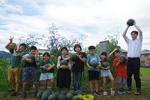 2年生は、早速畑に行って収穫をしました。たくさんの収穫物があったのですが、一番驚いたのは、スイカでした。