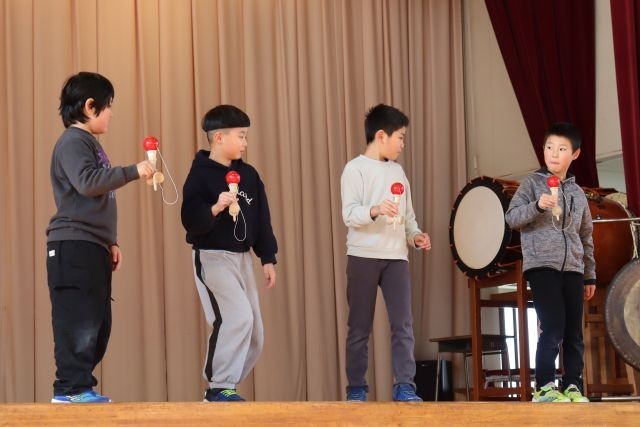 お知らせ委員会主催で、「特技自まん大会」が開催されました。希望者が、歌やけん玉、縄跳びやイントロ曲当てなど、全校のみんなに披露しようと思う「ワザ」を持ち寄りました。一部の先生方も、子どもたちに負けじといろいろなワザを披露しました。参加しなかった子も、温かい目と心で応援したり見守ったりする姿があり、全校がほっこりする時間になりました。