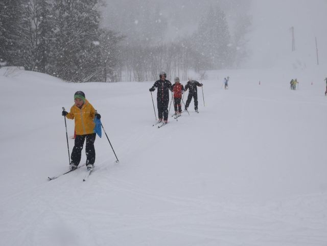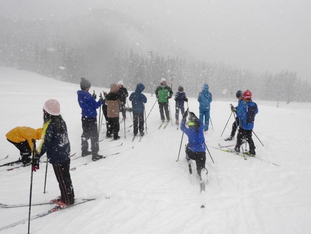 芦ケ崎小では3年生以上がアルペンの部とクロスカントリーの部に分かれ、マウンテンパーク津南スキー場で行われる町スキー大会に出場します。14日(水)の現地練習では、猛吹雪の中、練習をがんばりました。雪の降らない地域では想像もつかないでしょうけれど、雪が横から殴るように降るコンディションでも、雪国の子どもたちはスキー練習に取り組むのです。雪国の子どもたちの強さは、こういうところから育まれるのだと、心の底から思います。一方、1・2年生は、学校近くのフィールドで基礎練習。コンディションに恵まれ、上達が早いようです。3年生以上も、できることなら少しでもよいコンディションで練習させてあげたいものです。