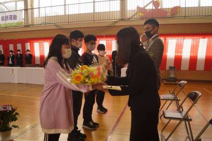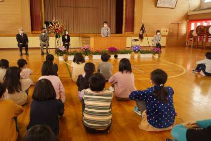 25日に令和3年度の離任式が行われました。今年度は5名の教職員が転退職されます。
