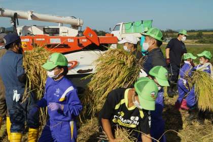 JAの方や地域の農家の方々の協力を得ながら、無事に稲を刈ることができました。