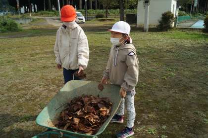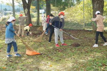 異学年グループ「さわらび班」で定期的に実施しているふれあい交流タイムですが、年に1回程度、遊びではなく、ボランティア活動に取り組むことが慣例となっています。10月19日(火)に行われた秋のふれあい交流タイムでは、偶然全部のグループがボランティア活動に取り組むことになり、全校児童がグラウンドの落ち葉拾いや草取りなどに取り組みました。