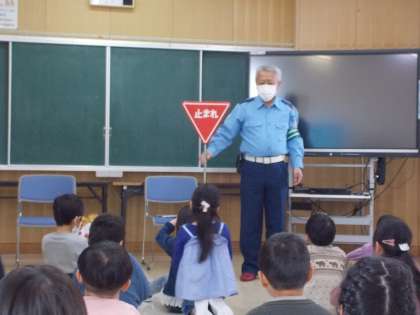 自転車に乗るときは、「ブタはしゃべる」を合言葉に点検を行うといいそうです。ブレーキ、タイヤ、反射材、車体、ベル の点検をしっかり行ってから乗るということを教わりました。また、横断歩道を渡るときもそうですが、安全確認を十分行うことの大切さを子どもたちは学びました。