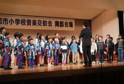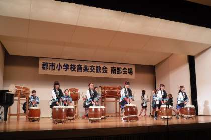 10月26日(木)南部地区の音楽交歓会に出演しました。3年生以上が歌、そして4年生以上が太鼓演奏で出演しました。大きな会場にもかかわらず堂々とした発表ができました。太鼓の迫力も会場の皆さんに伝わりました。この感動の演奏を28日(土)の150周年記念式典でもご覧ください。