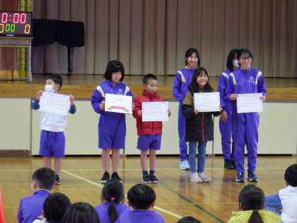 11月28日(火)昼休みに、健康委員会が中心となって、大縄跳び大会を開催しました。毎年、冬の健康づくりにと縄跳びを推奨しています。大会を通して、仲間と協力し合い、学級の繋がりを深めることや達成感や満足感を味わうことが目的です。