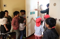 5月10日(金) わかば保育園と芦ケ崎小学校の合同で避難訓練(火災想定)を実施しました。令和6年度初の避難訓練でしたが、落ち着いて、素早く避難を完了することができました。保育園のみなさんも、小学校体育館からの避難でしたが、きちんと避難することができました。その後、学校中の防火シャッターや防火扉のしまった状態の様子や使い方について学習しました。保育園のみなさんは、ちょっとした学校探検の気分でした。