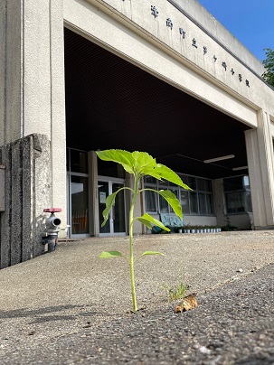 奇跡のひまわり 公開日 2024/05/24 更新日 2024/05/24 お知らせ 運動会に向けて頑張っている子どもたち。 児童玄関前に、頑張っている子どもたちを励ますかのように「ひまわり」が生えてきました。それも、コンクリートとコンクリートの間から。すごい生命力を感じます。 芦ケ崎小の子どもたちと同じように、大輪の花を咲かせてくれることを期待しています。