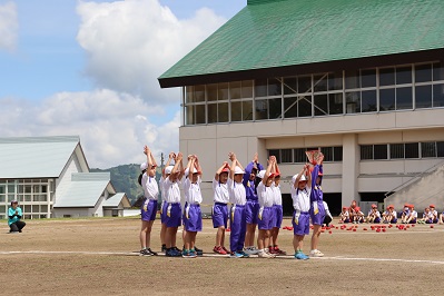 運動会 ダンシング玉入れ 公開日 2024/05/25 更新日 2024/05/25 お知らせ ダンスを踊っている途中で笛の合図で玉入れ。また、笛の合図でダンス。 1・2年生 「Mela!」 3・4年生 「唱」 5・6年生 「Bling-Bang-Bang-Born」 それぞれ自分達で選んだダンスを踊りました。とても楽しそうで、うれしそうで、いきいき踊る子どもたち。いいなあと思いました。