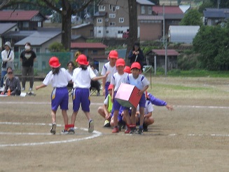 上学年種目は、「息を合わせて二人三脚 二人の運命は?!」です。