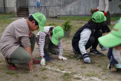 式の後はさっそくグラウンドに移動して、草取りのボランティア活動に汗を流しました。
