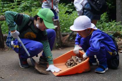 今年も全校児童が協力して駐車場や遊歩道などをきれいに清掃しました。
