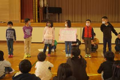 11月2日(月)に、いじめ見逃しゼロ集会を行いました。各学年がいじめをしない、させない、見逃さないために実行するめあてを発表しました。その後、縦割りのさわらび班ごとに校内ウォークラリーを楽しみました。協力しながらクイズや課題を解くことで、助け合ったり認め合ったりして、いじめを生まない人間関係を醸成するためです。