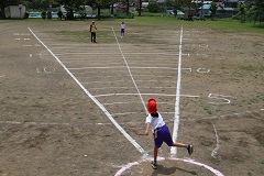 全校で体力テストを行いました。さわらび班(縦割り班)に分かれて、5種類の体力テストに挑戦しました。