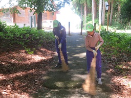 その後、5つの班に分かれて、草取りや落ち葉掃き、木の枝などの片付け、こけ取りなどを行い、とてもきれいな場所になりました。