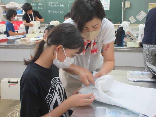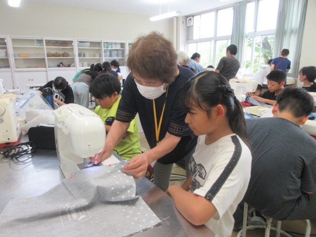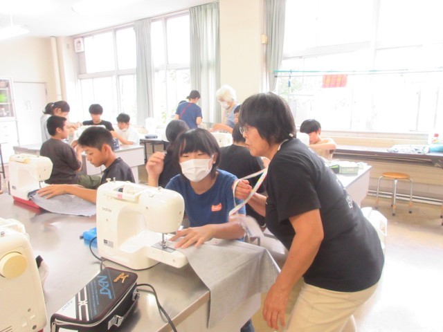 ミシンの指導は本当に大変なんです。担任1人で多くの子どもたちを支援するのは容易ではありません。eクロス津南の方々に教えていただきながら真剣にミシンに向かう子どもの姿は素敵です。それを支えていただいた5名の皆様に感謝です。