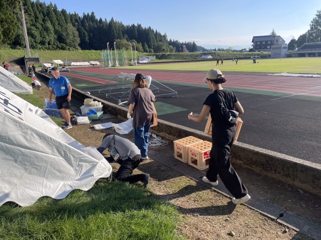 大勢の保護者の方からご協力いただいたおかげで、テント立てや道具の搬入などをスムーズに行うことができました。どうもありがとうございました。明日の子どもたちの活躍が楽しみですね。