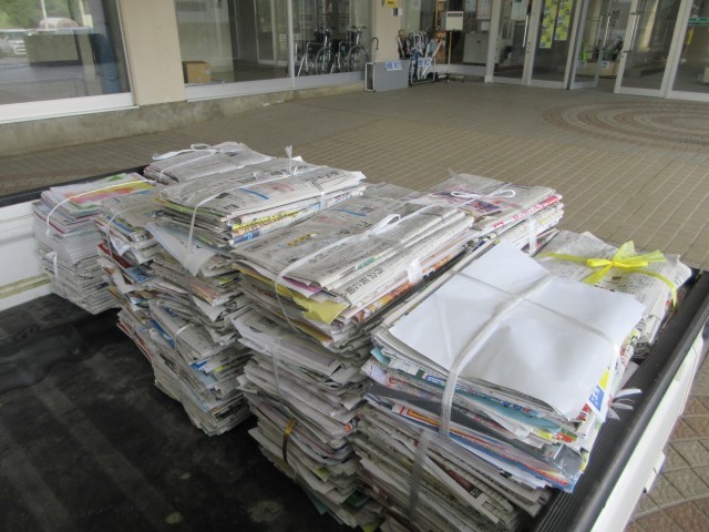 空き缶、段ボール、新聞紙を地域の方々が学校に持ち込んでくださいます。新聞紙は段ボールの4倍の値がつくそうです。1年間の収益で子どもたちのためにボールやトランプなどの品々を購入しています。