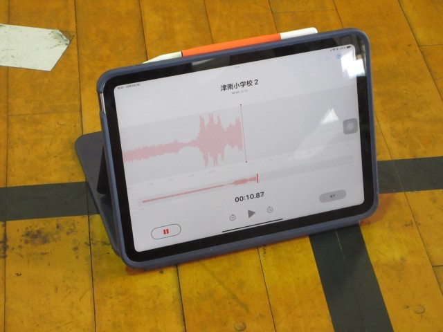 5年生はタブレットを使って何やら録音していました。みんな顔を寄せて楽しそうにレコーディングしていました。