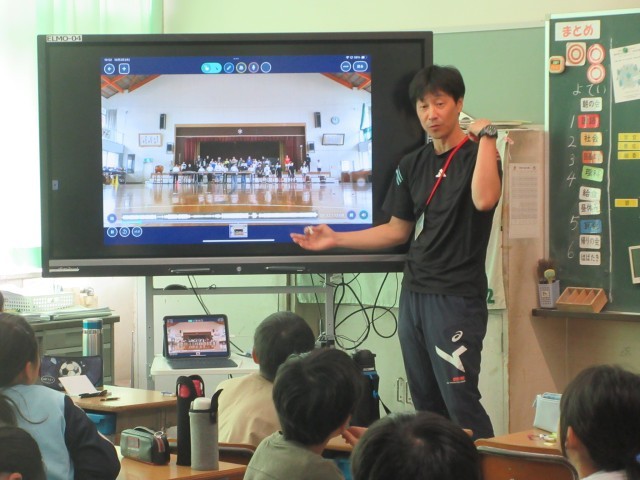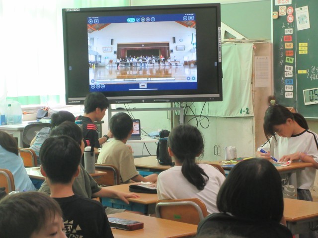 4年生は映像を確認しながら先生を交えて何やら話し合っていました。この動画誰が踊っているの?「私たち!」・・・ブレイキンやる?「やらない!」もっとすごい踊りになるらしいです。