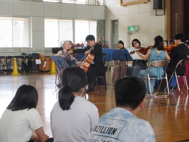 その後・・・アルスノーヴァの皆さんが音楽サークルの子どもたちの演奏指導をしてくださいました。その様子は、次の記事を見てください。