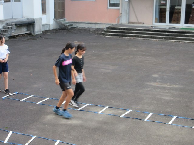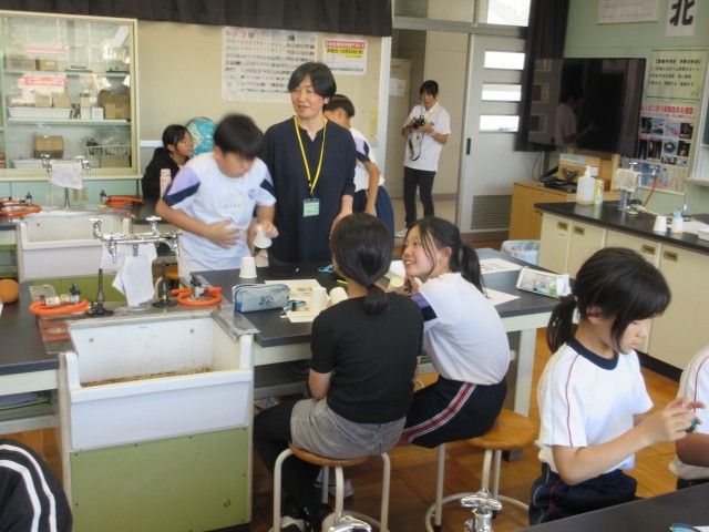 その後は、各自が希望した教科に分かれ、中学校の授業を体験しました。子どもたちが楽しく学べる工夫が施されていて、みんな楽しく活動することができました。授業の後は部活動。各自が選択した部活に参加し、中学校の部活動を体験しました。