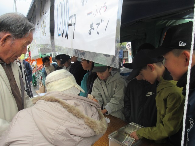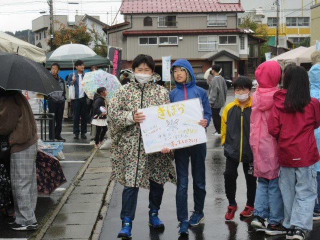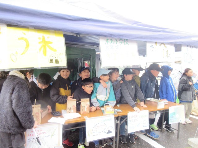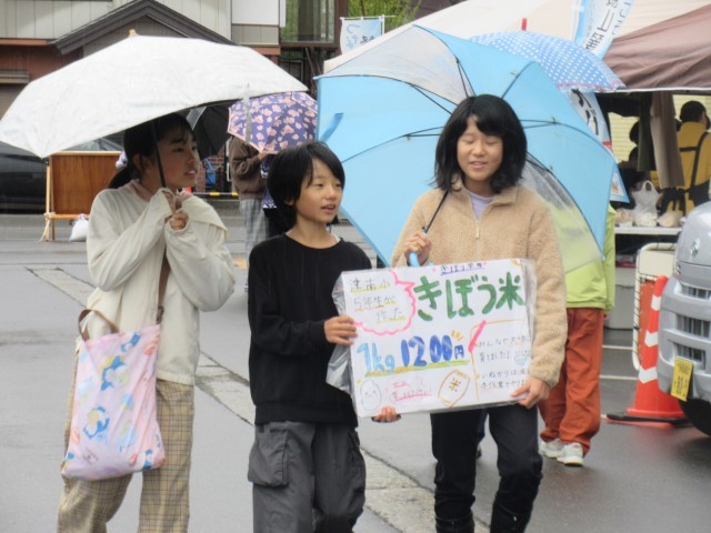 冷たい雨の降る中、プラカードを下げてお客さんに宣伝する子、お店でお米を販売する子、みんなが自分の役割を果たして活動する姿は素晴らしかったです。
