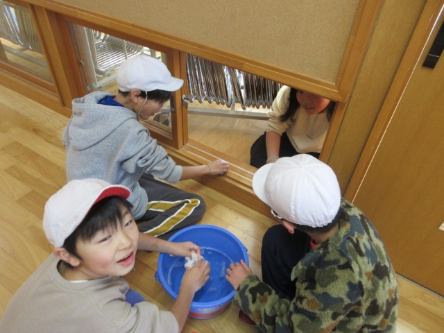 みゆき班に割り当てられた清掃場所でいつもの掃除に加えて普段はできないような作業にも取り組みました。