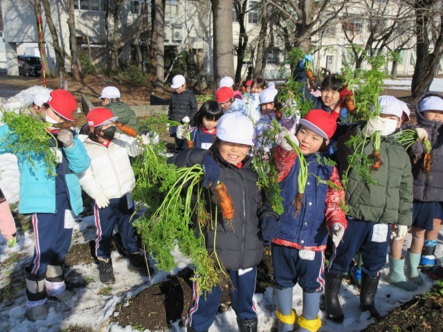 本日収穫した大根とニンジンは19日に開催する。おでんパーティーに使う野菜です。このパーティーには、日頃お世話になっている教育ボランティアさんたちを招待して開催することになっています。子どもたちは張り切るはずです。