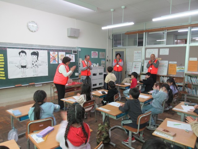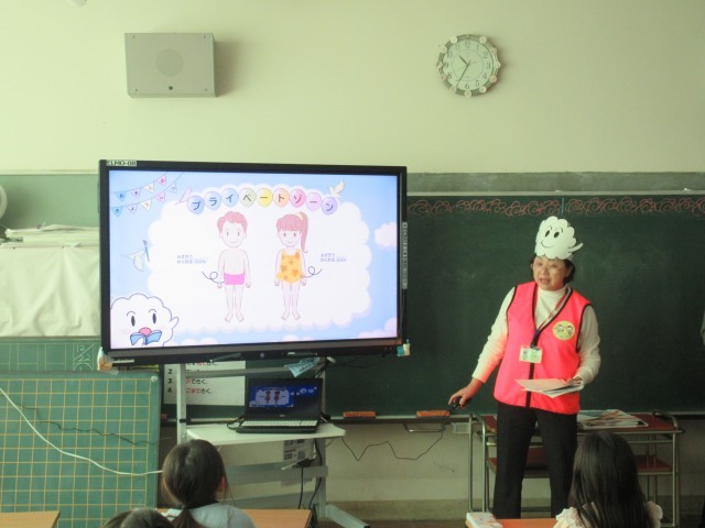 4名の人権擁護委員さんからお越しいただき、1年生の1組と2組それぞれで人権教室を行いました。今回のテーマはプライベートゾーンについて。人に見せたり、友達のズボンを下ろしたりすることは、友達を傷つけたり、周りの友達を嫌な気持ちにさせてたりすること。プライベートゾーンは大切なところなので、お互いに大切にする気持ちを持つこと。など、スライドや劇を通して教えていただきました。