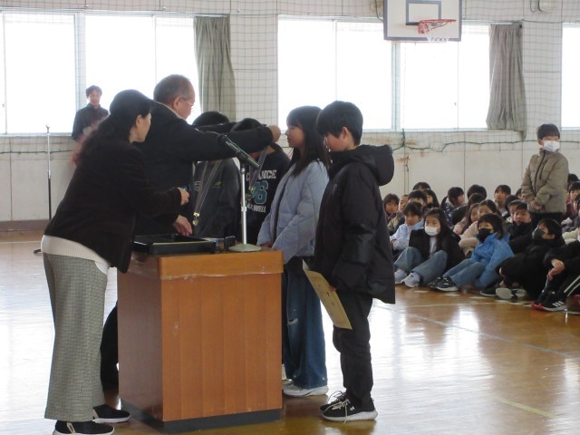 全校集会では、津南町駅伝大会で成果を上げた子どもを讃えました。その後の話の中で、今年の干支である午年の人はいますか?と問いかけると、36歳になる方はいませんでしたが、その他の年代の年男、年女がたくさんいてびっくりました。