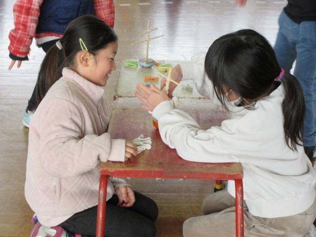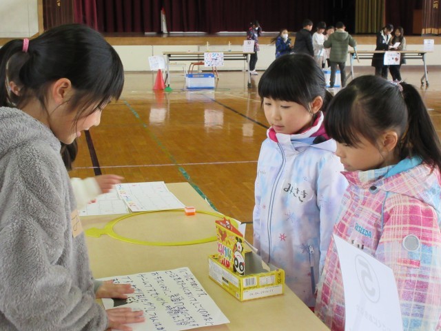 2年生は体育館で遊びランドを開きました。上郷小と芦ヶ崎小の子どもたちのお店もオープンしました。互いのお店を回って遊ぶなかで笑顔があふれ、楽しそうに活動していました。
