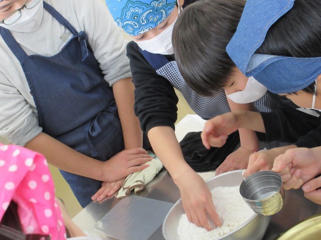 主な材料は米粉、米粉はもちろん5年生が育てたきぼう米からできています。