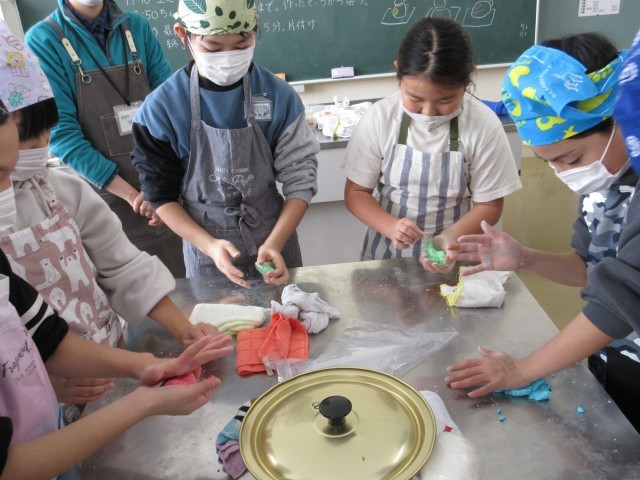 1月21日 当間高原リゾートから講師を招いて5年生がちんころ作りに挑戦しました。